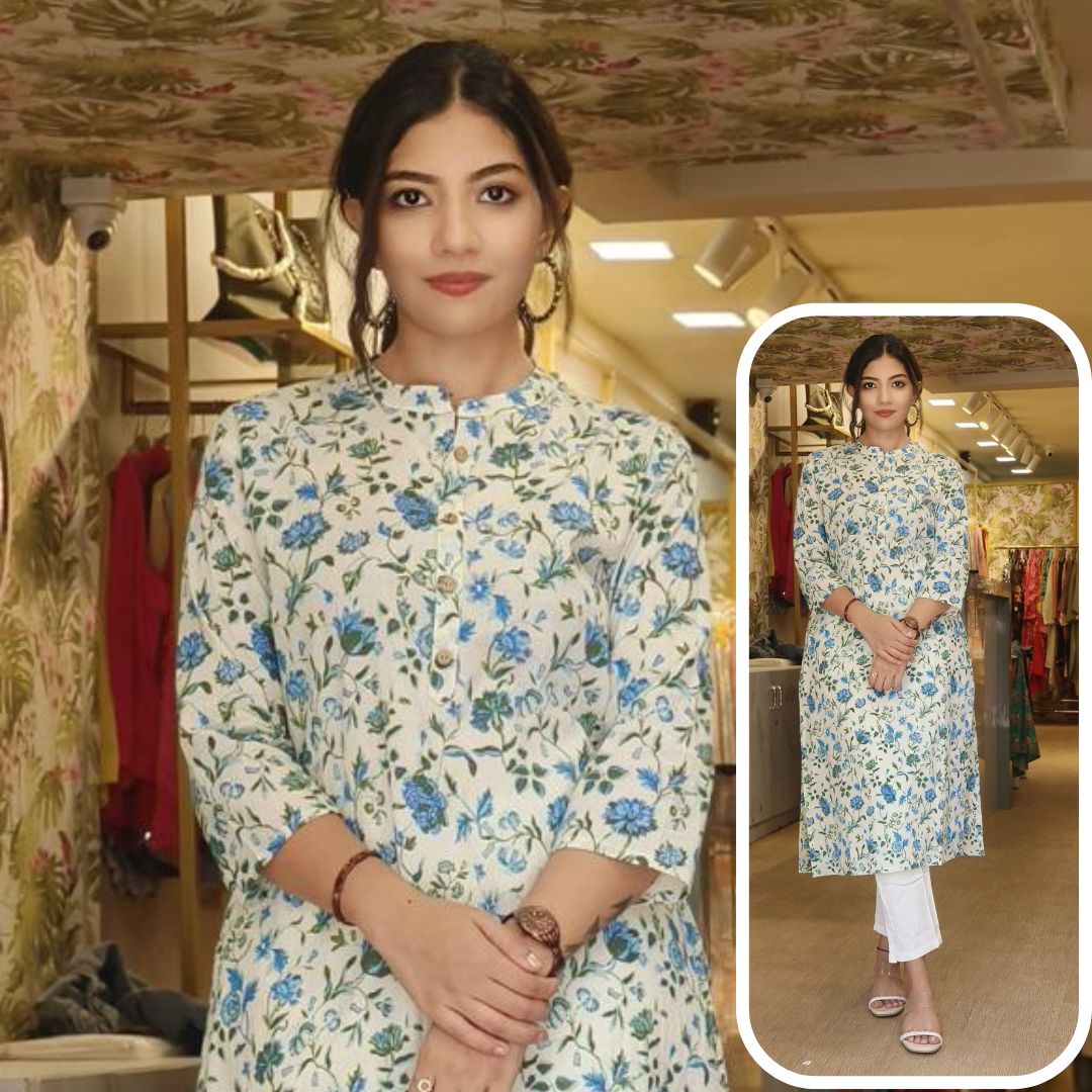 Discover the perfect blend of tradition and modern style with our Colors Collection Printed Cotton Kurti. Each piece is crafted from premium-quality, pure cotton fabric, ensuring maximum comfort and durability. The kurti’s elegant A-line silhouette offers a flattering fit, while the stunning, vibrant prints add a touch of artistic flair.