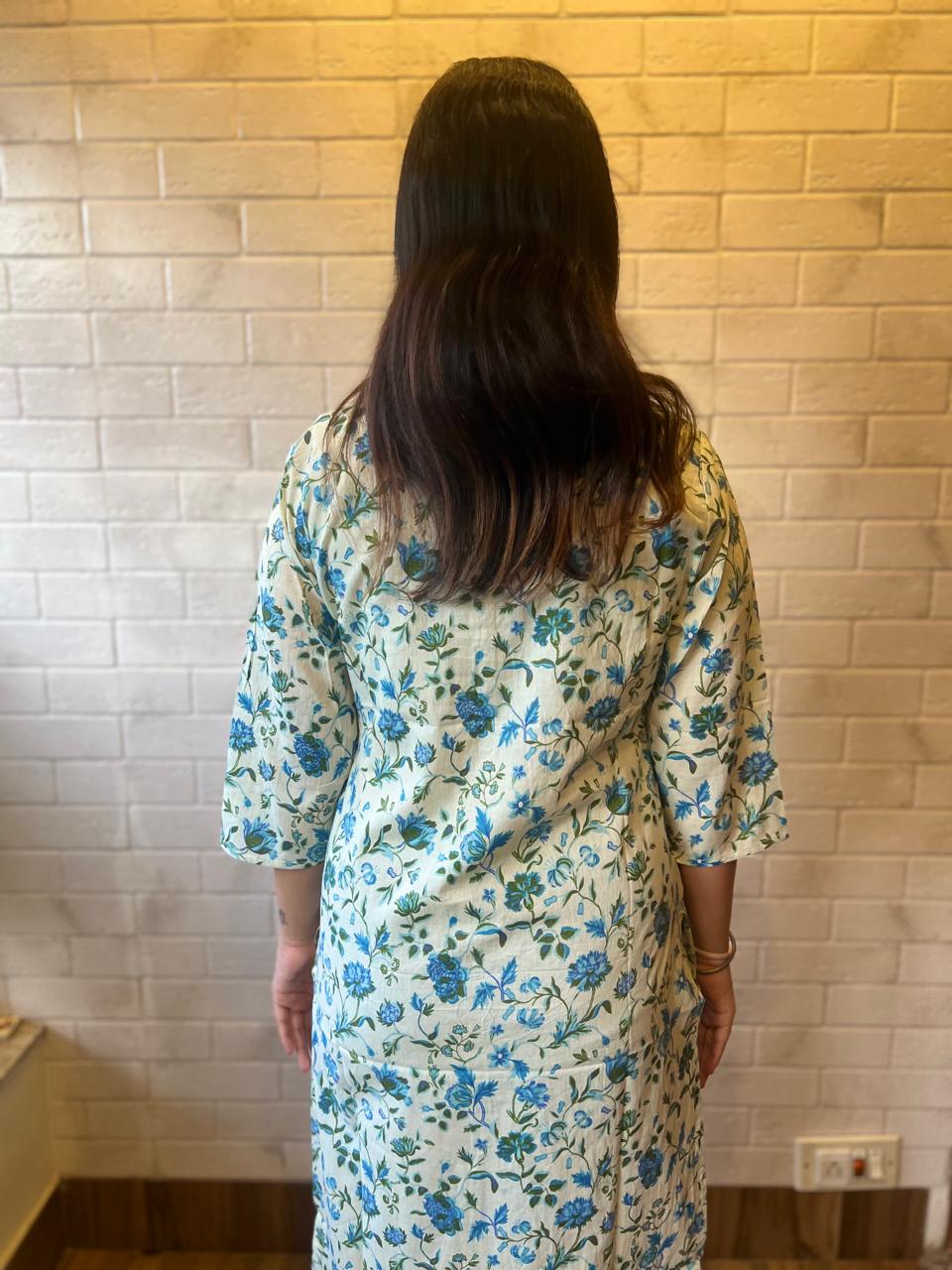 The intricate patterns, inspired by traditional Indian motifs and contemporary designs, make this kurti a standout piece for any occasion. The fabric is treated to maintain its color and softness, wash after wash. The three-quarter sleeves and classic round neck with a subtle placket make it a timeless addition to your ethnic wear collection.