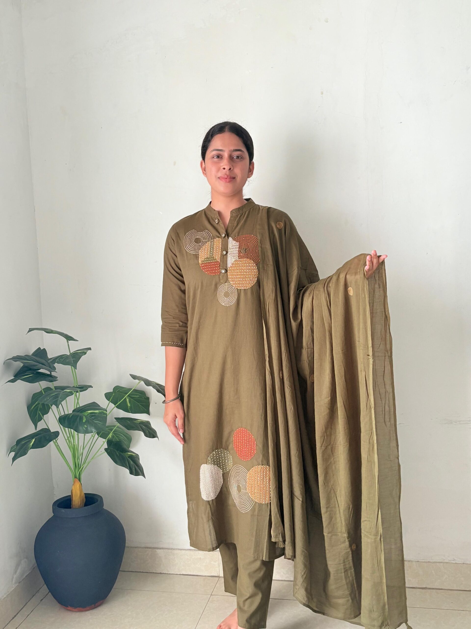 Elegant thread embroidery work salwar suit with cotton comfort – traditional meets trendy.